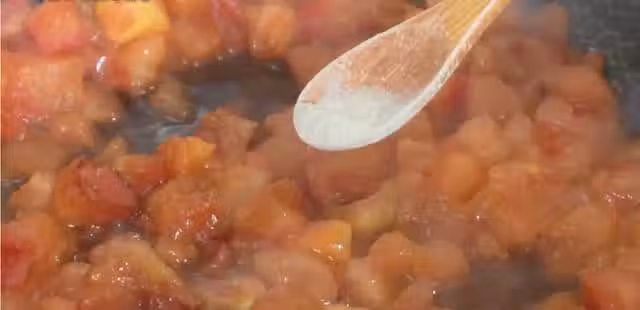 炒到西紅柿變軟之後往西紅柿里加入一勺生抽,再加入適量的鹽和胡椒粉,鹽要比我們平時炒菜多放一些,大概是平時炒菜的兩倍多,翻炒均勻。