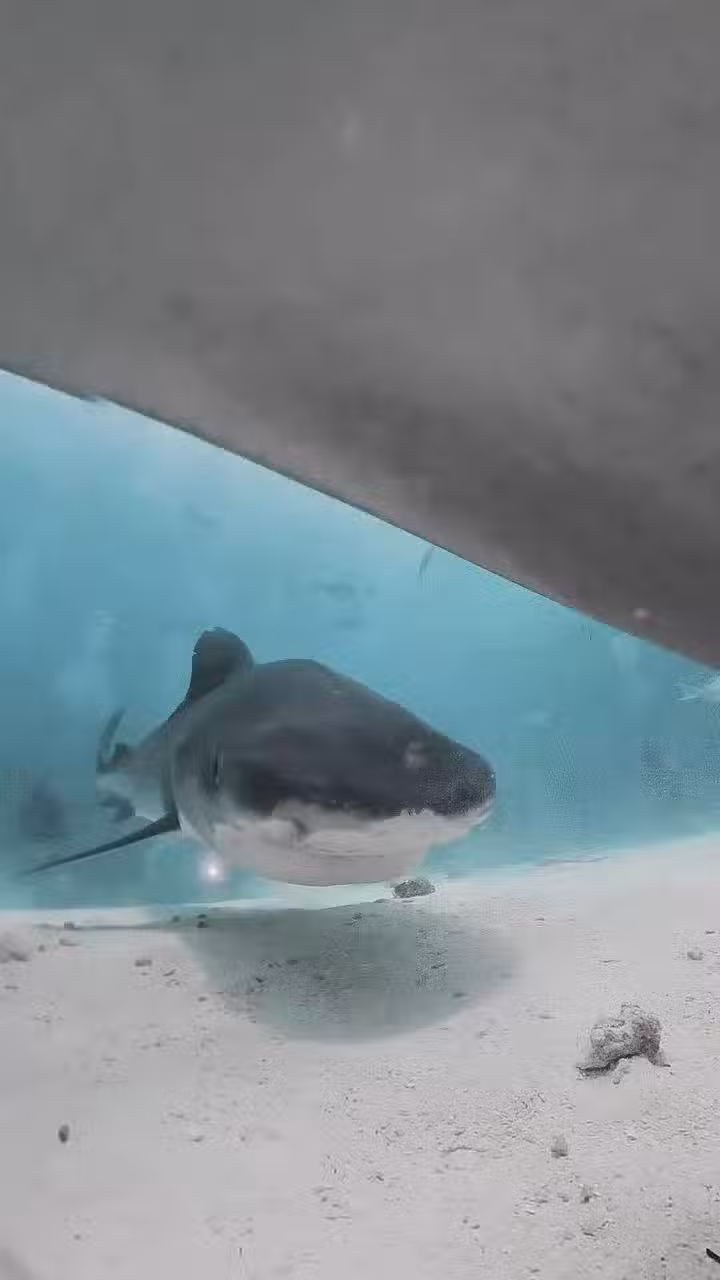 這名來自瑞士的電影製片人達奇德(Zimy Da Kid),先前前往馬爾地夫南部拍攝紀錄片,當時他就在有著許多虎鯊的福阿穆拉環礁(Fuvahmulah)一帶,原先他將攝像機放在重物上,接著讓攝像機沉到海底的沙灘上,拍攝虎鯊群悠遊的畫面,結果一條虎鯊路過發現了攝像機...