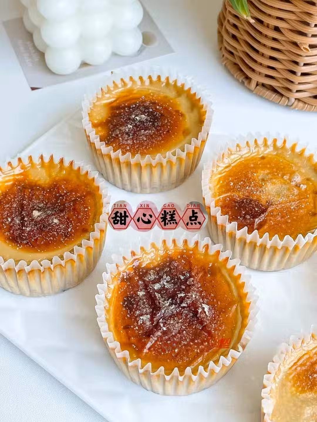 2)過篩兩次後倒入磨具中8分滿。烤盤中加入熱水,烤箱提前五分鐘預熱。180度烤20分鐘,取出再布丁表面撒上少許細砂糖。繼續烤10分鐘即可