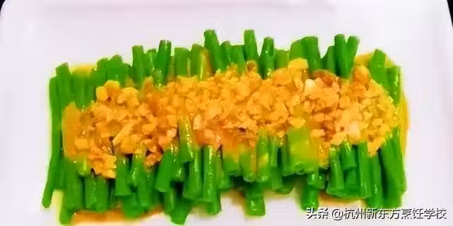 食材:豇豆、芝麻醬、蒜、鹽、生抽