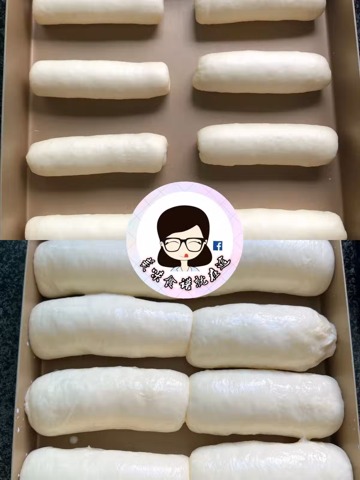 7️⃣出爐晾涼後,中間切一刀不要切斷,抹上檸檬乳酪醬,四周也抹一點,粘上奶粉即可