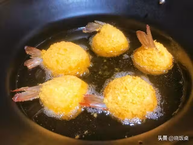 6、將蝦球炸至表面金黃酥脆以後即可撈出控油。