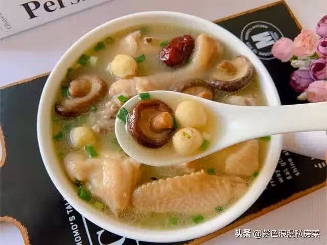 香菇我比較喜歡用小個的干香菇,燉湯特別香,吃起來口感也特別醇厚。冬季里吃多了滋補的食物,家人們都有點上火,所以我在湯里加了蓮子和百合,它們都有去火的功效,這鍋雞湯不僅滋補,還有健脾益腎潤肺,養心安神,解燥的功效。