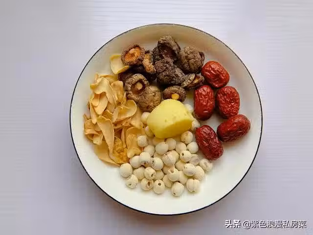 2.準備香菇,紅棗,蓮子,百合,香菇用熱水泡軟。