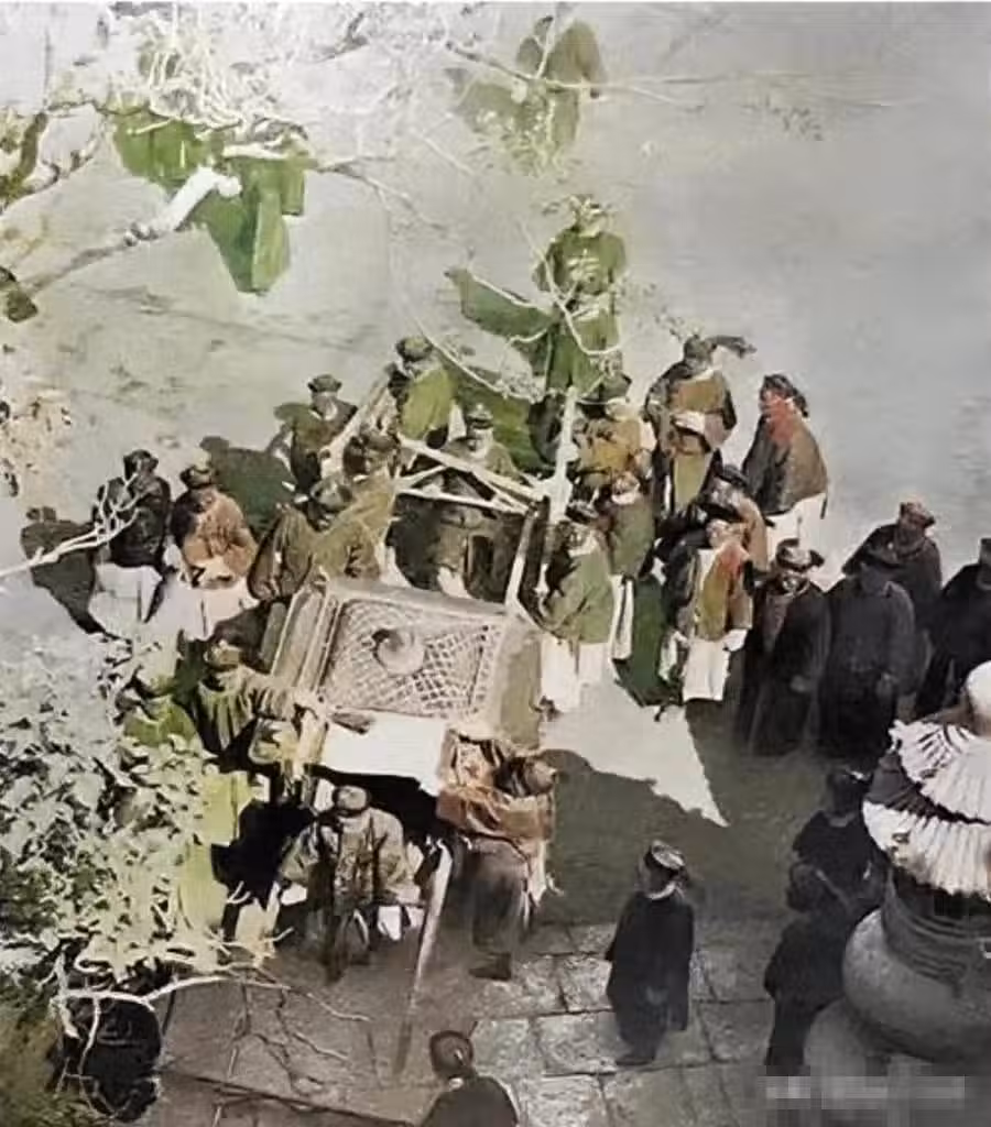 1902 年光緒帝存世唯一照片,光緒帝與慈禧逃離京城二次「回鑾」的時候,國外記者[偷.拍]的,竟是光緒帝從轎子裡出來的時候被[偷.拍],沒有留下過一張正臉,