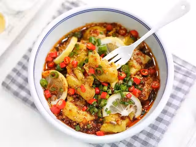 所需食材:琵琶腿2個、香蔥4根、生薑一小塊、青杭椒2個、小米辣3個、大蒜2瓣、花椒10克、八角2個、香葉2片、薑黃粉4克、辣椒麵8克、辣椒粉8克、細砂糖5克、熱油40克、熟的白芝麻適量、料酒3勺、生抽2勺、魚露1勺、香醋2勺、檸檬汁10克、鹽2克、檸檬片若干