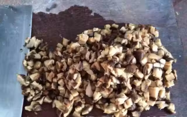將香菇洗乾淨,切成小塊!榨油,馬上撈起來!