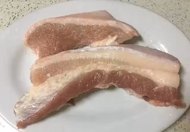 1、把五花肉切條,表面用叉子扎一紮,以便後面腌制時更入味。