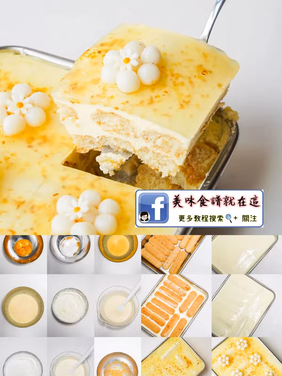 5️⃣桂花糖漿加入融化好的吉利丁液混合後,倒在提拉米蘇表面,冰箱冷藏1個小時。