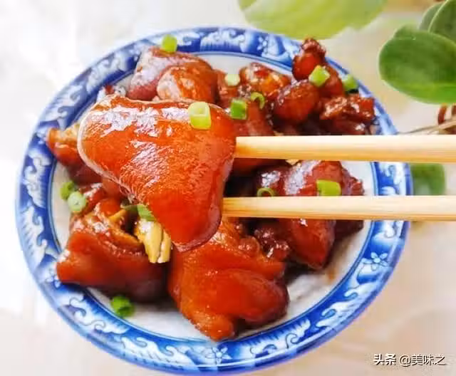 6、待豬蹄煮軟糯後,放入適量的鹽調味,然後開大火收汁,讓湯汁紅亮粘稠後就可以關火,起鍋前放入少許的味精,味道更鮮美。