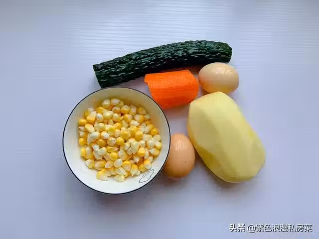 3.鍋中放清水,放入雞蛋煮熟,再放土豆 胡蘿蔔,玉米煮熟撈出。