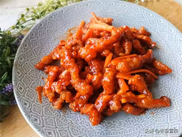 【糖醋裡脊】所需材料:豬通脊半斤、胡蘿蔔1段、番茄醬3-4湯匙、油鹽適量、蔥1段、姜1片、生抽1湯匙、料酒1湯匙、白鬍椒粉半茶匙、白糖4湯匙、米醋2湯匙、澱粉5-6湯匙、
