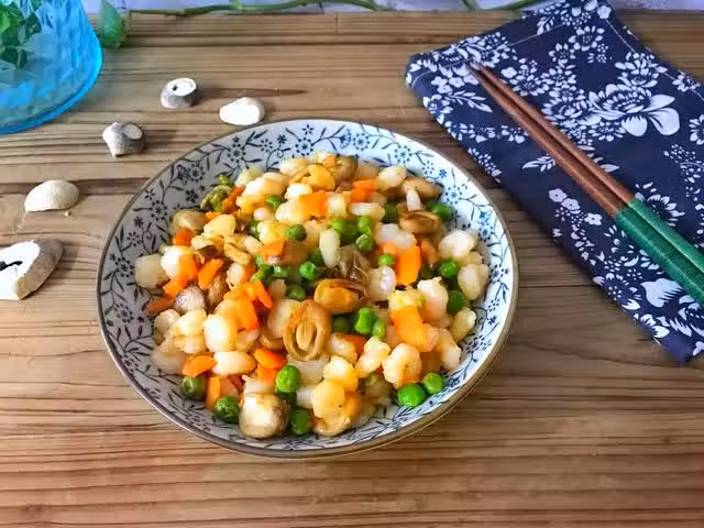 【做法】:1、草菇洗凈切片,蝦仁用鹽和料酒腌10分鐘。青豆洗凈,胡蘿蔔去皮後切成小粒。