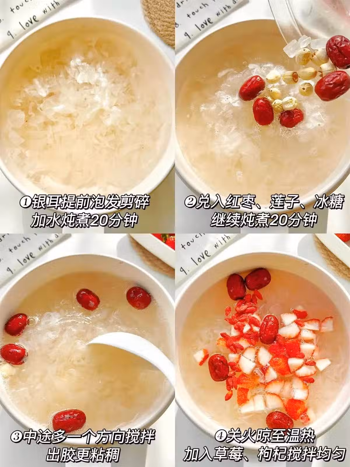 草莓一定要等關火了之後,放到溫熱,再放進去和枸杞一起!