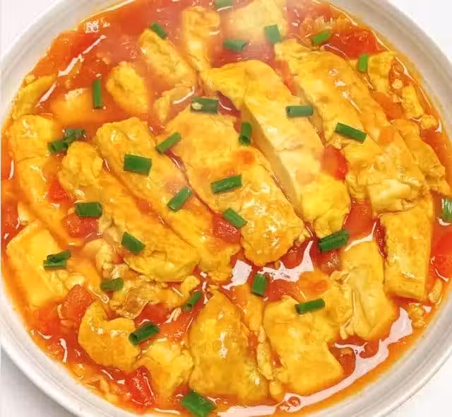 食材準備:番茄、雞蛋、豆腐、番茄醬、小蔥、生抽、食鹽、白糖、陳醋、澱粉