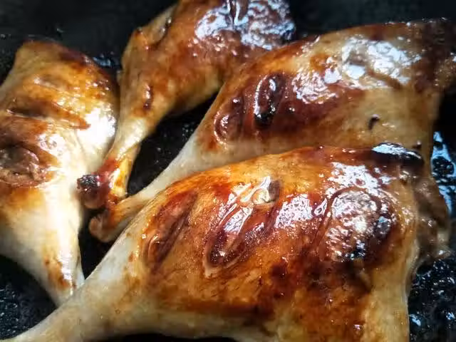 第七步:然後將鴨腿放入高壓鍋中,放入材料表上面的所有配料,再放一勺大醬