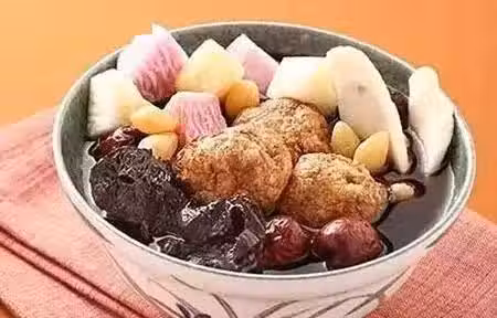 這道素食煲湯很適合血虛體弱、過度疲勞的人食用。山藥含有天然荷爾蒙,經常食用可以強健身體、恢復體力、滋潤肌膚。熟地能補血滋陰。