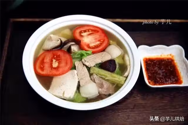 3.湯鍋裡面很清淡,蘸碟成了必須哦,蘸豆腐,肉片和白菜,超級美味哦。