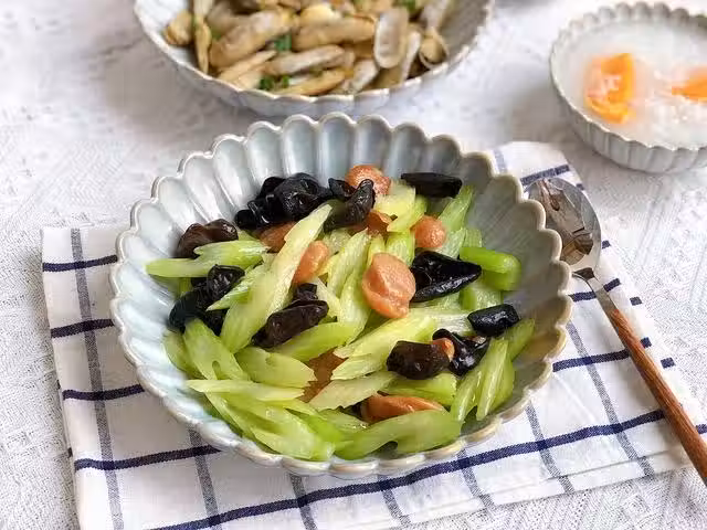 製作過程:1、我們先將干木耳放入水中浸泡一下,使其充分泡發;2、芹菜清洗乾淨後,斜切成菱形薄片;香腸切成小塊。3、起鍋燒水,水煮沸後,將芹菜先下鍋焯燙,焯燙至斷生撈起來沖一下涼水,讓芹菜保持清脆口感;木耳也要下鍋焯燙熟。4、起鍋燒油,油熱後,先將香腸下鍋煸香,再把木耳和芹菜一起下鍋,大火快炒出鍋,出鍋前加點澱粉水勾芡一下,這樣可以使菜色澤更加光亮有食慾,又能湯汁濃稠收汁,品嘗起來更加入味。