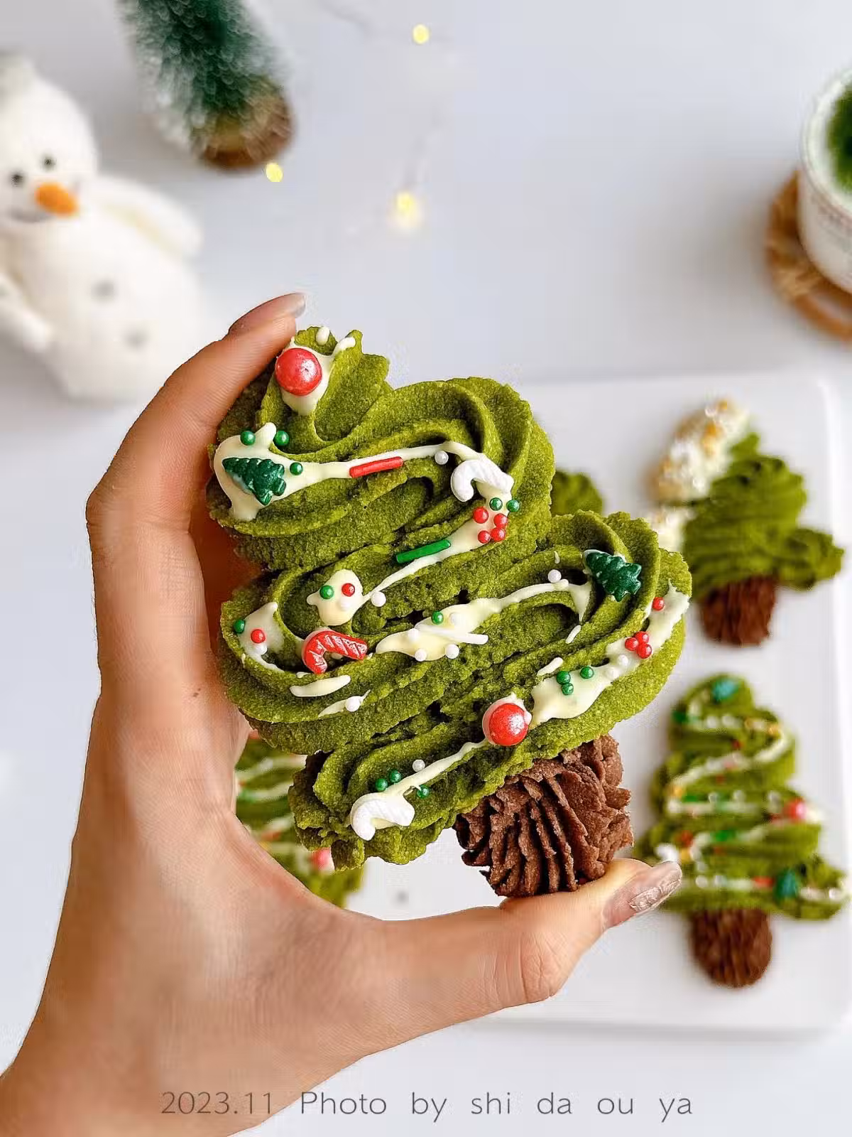 今天就分享一個,不用模具❗️酥鬆又簡單的🎄聖誕樹抹茶巧克力曲奇餅乾🍪