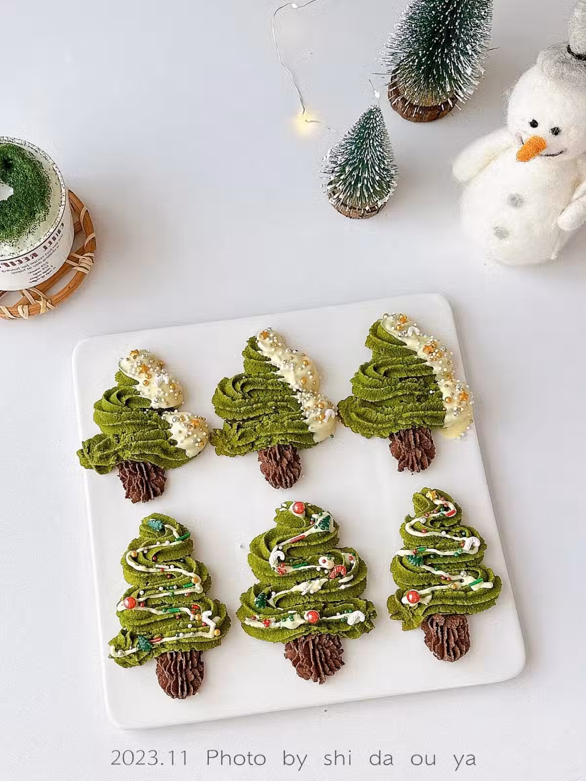 聖誕樹🎄抹茶巧克力曲奇餅乾❗️簡單無模具