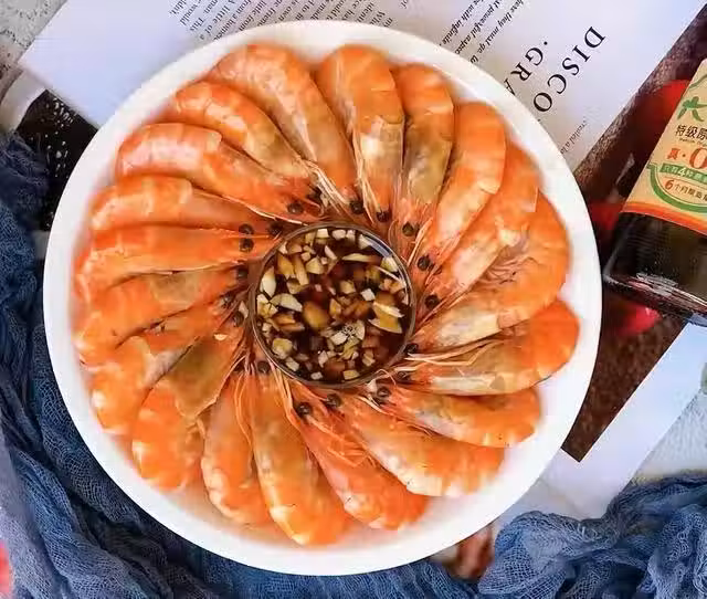 3、出鍋前可以滴幾滴食用油,使蝦色澤更加油潤好看。