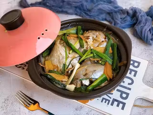 3、等鍋中水差不多收汁的時候,再加入蒜苗段,繼續燜半分鐘左右即可。這樣做出來的白鯧魚鮮嫩無腥味,解饞又下飯。