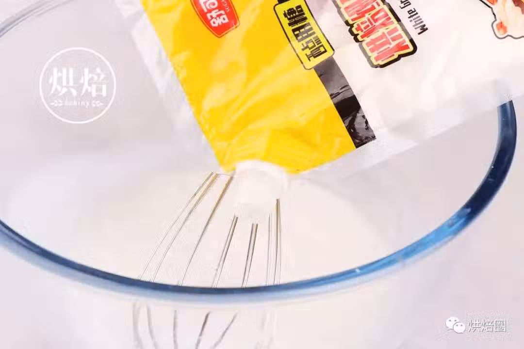 ④倒入50g木薯澱粉和20g粘米粉混合攪拌均勻。