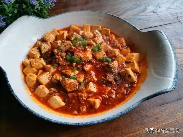 【家常麻婆豆腐】所需材料:豆腐1塊、豬肉100克、油鹽適量、蔥1段、姜1片、大蒜2瓣、郫縣豆瓣醬1湯匙、生抽1湯匙、白糖少許、花椒麵1茶匙、料酒半湯匙、水澱粉適量。