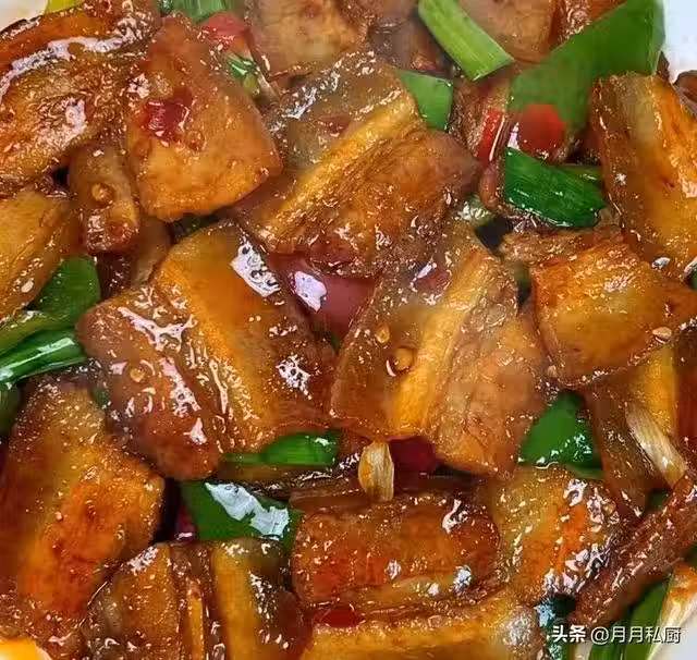 5.放入五花肉煎出油脂,再放入洋蔥和蒜苗,翻炒至斷生,倒入調好的料汁,開大火翻炒均勻收汁即可。