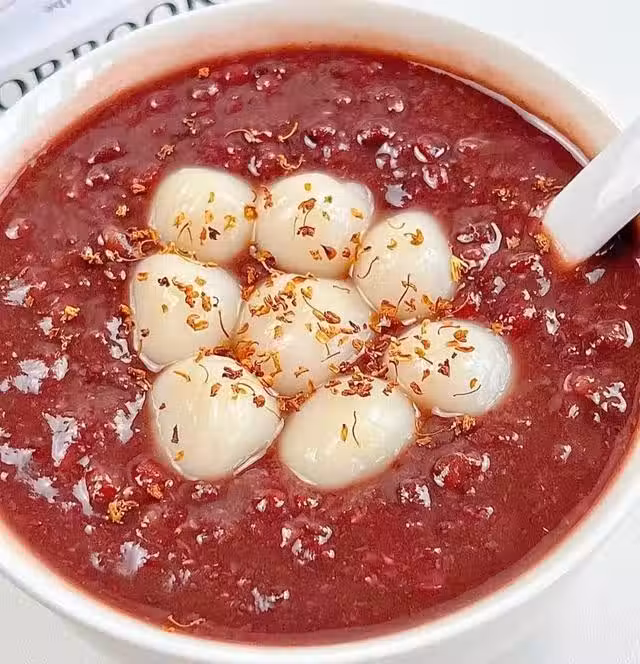 食材準備:紅豆、糯米粉、冰糖、桂花等。