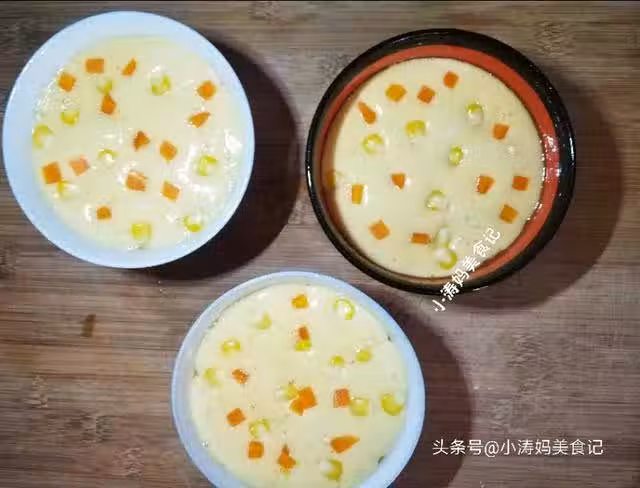 等鍋里的水燒開後,把一碗一碗的玉米雞蛋糊放入鍋里,蓋上蓋,繼續用大火蒸15分鐘。
