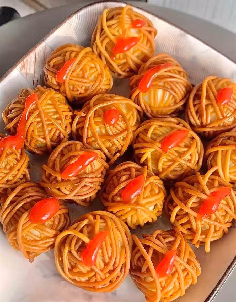 外面包裹的面條是脆脆的,裡面的蛋糯糯的,味道真的也蠻不錯的呢!