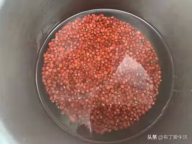 ③將泡好的紅豆連同水一起倒入電飯煲,如果水有點少可以酌量添加。按"煮粥"鍵開始煲煮,大概半個小時左右,紅豆就能完全"開花"。接著倒入冰糖,多次攪拌至冰糖繼續煮完全融化。按下"保溫"鍵,藉助餘溫燜一下,還能保溫。