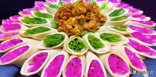 5、最後炒雞肉丁鋪在中間,好吃又好看的一道美味就完成了。