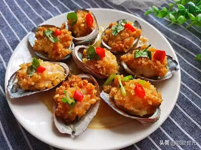 做法:1、準備6隻鮑魚,處理好內臟,清洗乾淨後,把鮑魚殼擺入盤中,在鮑魚肉上划上花刀,然後擺入鮑魚殼中。