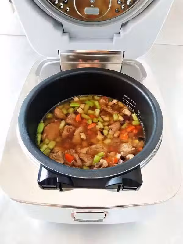 (3)由於排骨比較難熟,做這道燜飯前,要先煸炒或燜煮至半熟,做出來的燜飯味道足。如果將焯水後的排骨直接放入米飯中,燜飯的味道和口感不僅會稍差,排骨也可能有部分沒有熟爛。