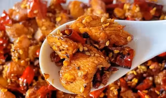 雞胸肉、干辣椒、白芝麻、黑胡椒