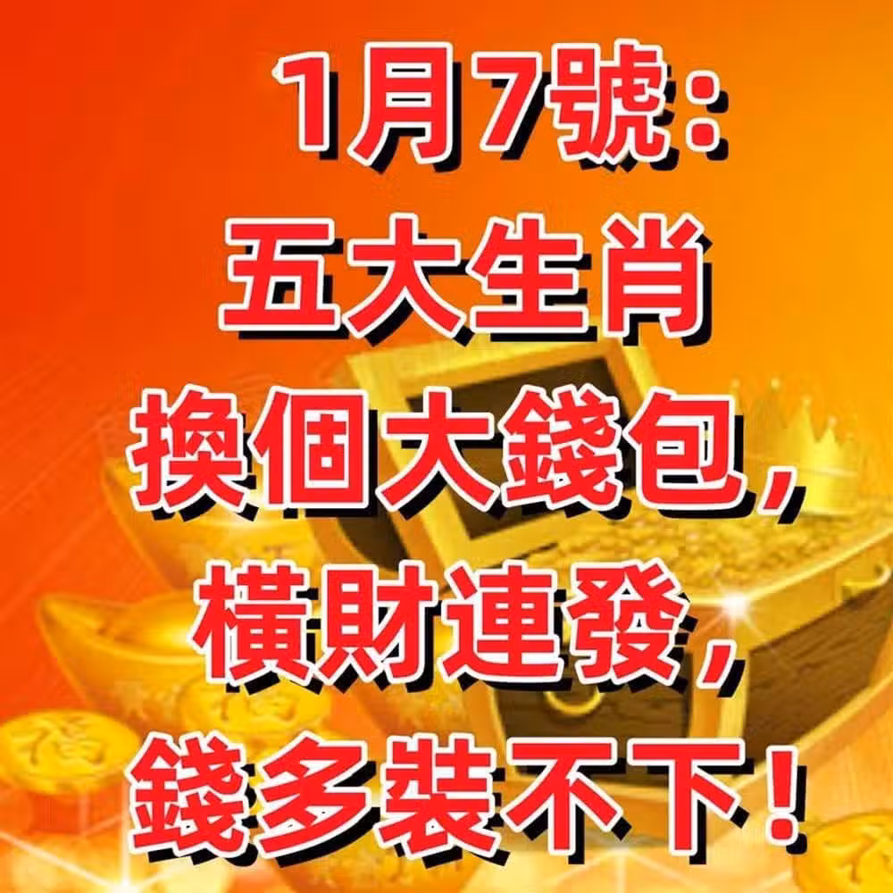 1月7號,準備換個大錢包,橫財連發,錢多裝不下的生肖!