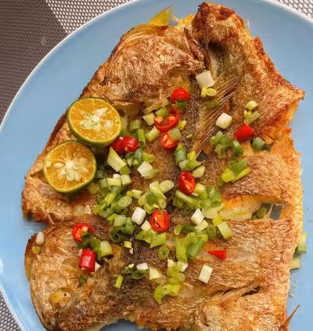 原料:黃花魚,姜,蔥,小米椒,小青檸
