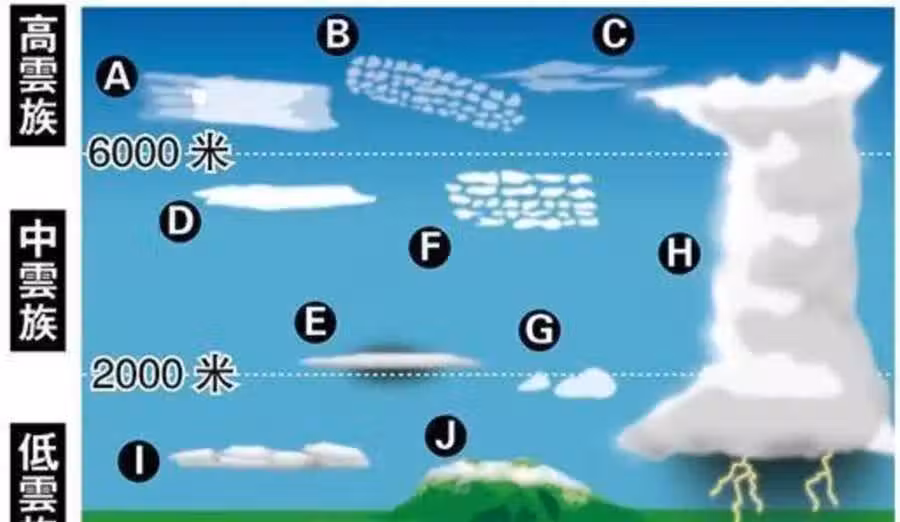 中雲族則是降雨的「主力軍」,它們大約距離地面2公里到6公里之間,在空氣的冷卻作用下,主要形成雨雲。