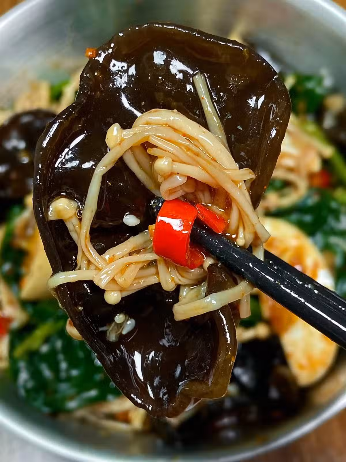 今天分享巨好吃的菠菜木耳拌金針菇!好吃掉秤~