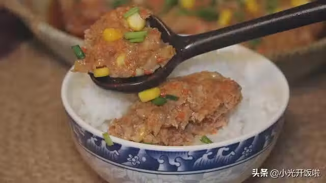 步驟①:做這種蒸肉餅首選用梅花肉,買回來的梅花肉清洗乾淨再剁成肉末,然後放到一個大盆里方便一會攪拌,有攪拌機就更省事一些,不然剁完了,手都累慘了哦。