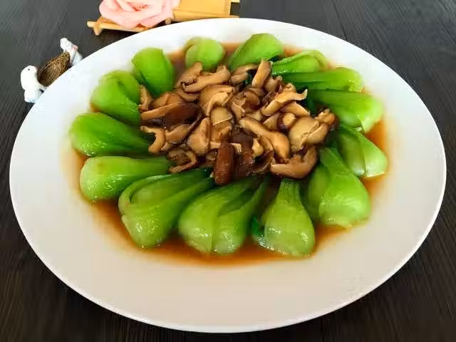 7.鍋中湯汁加入水澱粉轉小火不停的攪拌,待湯汁濃稠淋在香菇油菜上,一道爽口開胃的香菇油菜就做好了