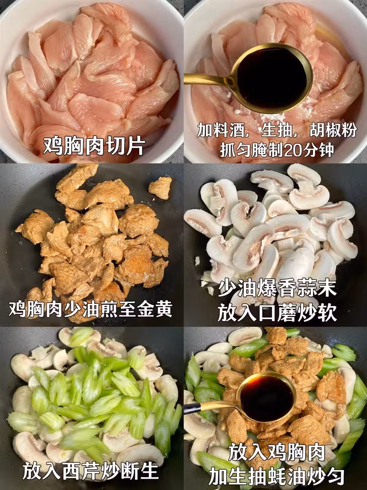 姐妹們,想不到口蘑和雞胸肉的搭配,真的泰香了!嫩滑的雞胸肉,脆爽的西芹,還有香甜的口蘑汁水!巨巨好吃!!低脂低卡,簡單飽腹,快去試試!!