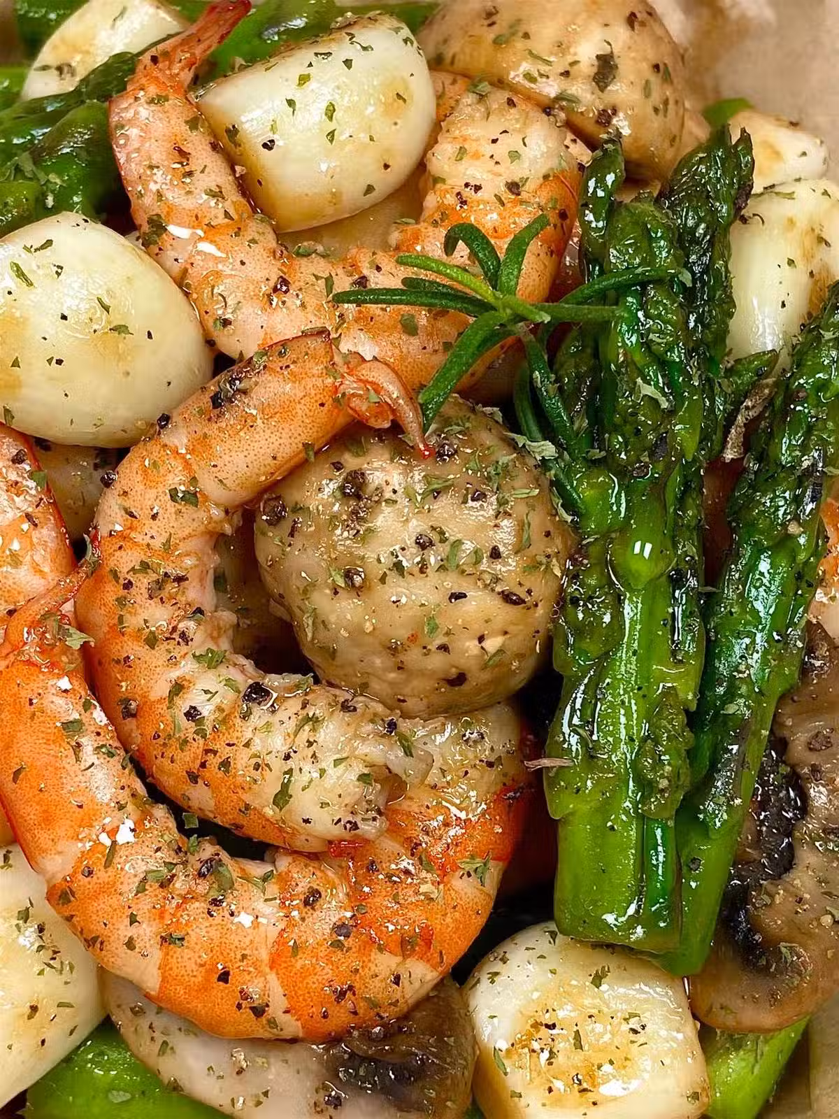 🍤食材:蝦、蘆筍、口蘑、蒜