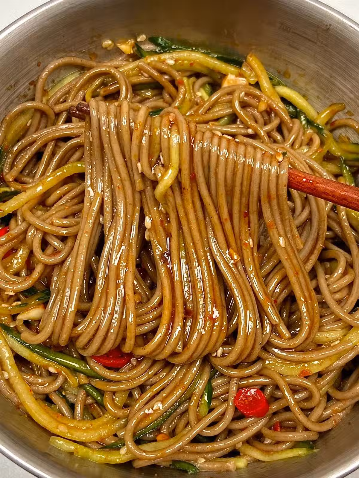 🥒食材:蕎麥面、黃瓜、蒜、小米辣