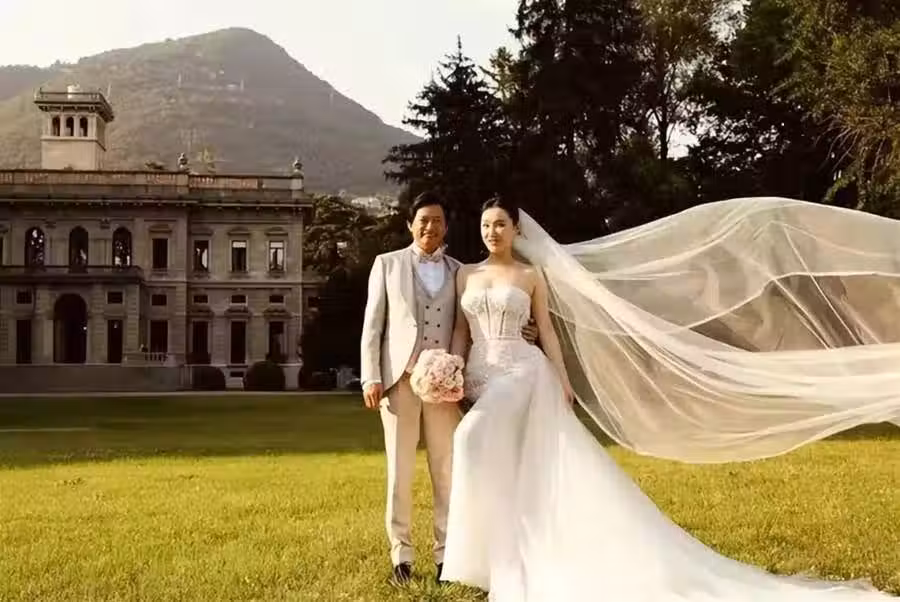 現在,他的身份又有了一個巨大的轉變:他和王冰冰在義大利著名風景區科莫湖一處城堡舉行婚禮,他從王冰冰的老師,變成了王冰冰的老公!