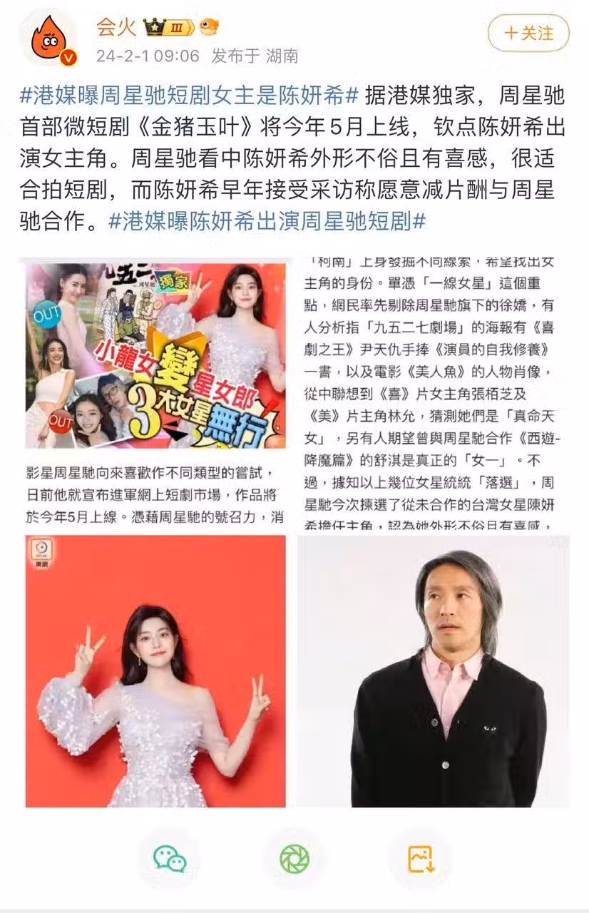 星爺最近一部作品還是 2019 年的《新喜劇之王》,四年內雖然沒有新作品,但他卻開通了 IG 帳號與粉絲們互動,去年他也曾曬出超厚的劇本,宣布籌拍新片《少林女足》。如今,影迷們已經開始期待短劇的播出了~