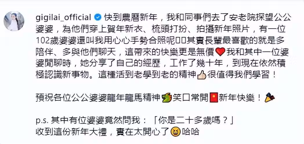 黎姿探訪養老院,被102歲婆婆問:你是二十多歲嗎?瞬間欣喜若狂